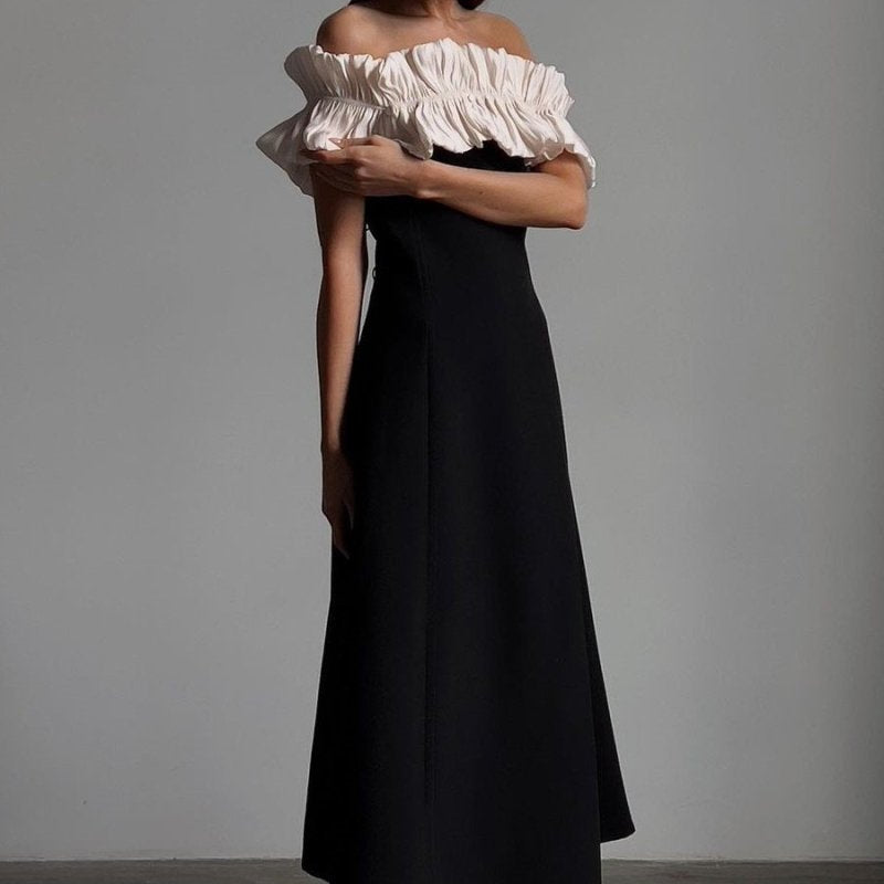 Bonnie Omuz Açık Volanlı Uzun Elbise