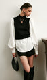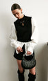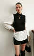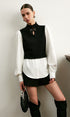 2’si 1 Arada Renk Bloklu Metal Detaylı Triko Bluz