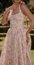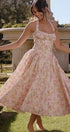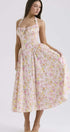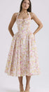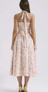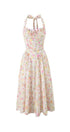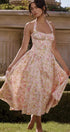 Abigail Baskılı Halter Yaka Korse Midi Elbise