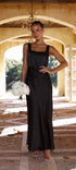 Alaria Maxi Elbisemizle unutulmaz bir gece yaşayın! Bu çarpıcı uzun elbise, resmi etkinlikler veya özel günler için mükemmeldir ve en iyi giyinerek taçlandırılmanızı sağlar. Kalın omuz askılı, muhteşem bir kare yakaya, yanlarda büzgülü detaylara ve şık bir ön yan bölmeye sahiptir. Polyesterden yapılmış olup, zamana meydan okuyan ve hoş bir uyum sunar. Lüks bir görünüm için minimal mücevherler, şeritli topuklu ayakkabılar ve bir el çantasıyla eşleştirin.