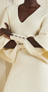 V Yaka Balon Kol Midi Elbisemizle kendinizi ifade edin. Bu göz alıcı tasarım, göz alıcı bir V yaka çizgisine ve cesur bir görünüm için benzersiz kesiklere sahiptir. Kolsuz, çok esnek triko rahatlık ve şık bir uyum sağlarken balon kolları dramatik bir dokunuş katıyor.
