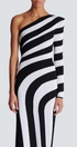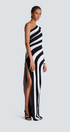 Alizea Tek Omuz Yırtmaçlı Asimetrik Çizgili Maxi Elbise