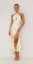 Amalia Maxi Elbise, hem zarafet hem de çok yönlülük sunan, gardırobunuza çarpıcı bir ektir. Boyundan bağlamalı, şık kesim detaylı ve çıkarılabilir, ayarlanabilir boyun bağına sahip bu elbise kişiye özel uyum sağlar. Maksimum uzunluk ve yan yırtmaç çekici bir dokunuş katarken görünmez arka fermuar kusursuz bir siluet sağlar.