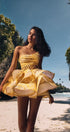 Asimetrik korsajı ve bel kısmında şık bağcık detayları bulunan bu çiçek desenli mini elbiseyle şıklığı kucaklayın. Hafifçe esnek şifondan yapılmış olup, hoş bir uyum ve zarif bir hareket sunar.