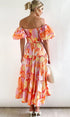 Andrea Baskılı Omuzu Açık Puf Kol Katlı Maxi Elbise