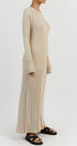 Klasik yuvarlak yakalı, eğlenceli geniş kollara ve etek ucuna sahip bu vücuda oturan maksi elbise ile zamansız zarafeti keşfedin. Yüksek esnekliğe sahip trikodan üretilen bu ürün, vücudunuzu saran bir kesim sunar ve sizinle birlikte hareket ederek hem konfor hem de şıklık sağlar.