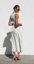 Gardırobunuzu zenginleştirmek için tasarlanan krem rengi kolsuz maxi elbisemizin zarafetini keşfedin. Şık yüksek yuvarlak yakası ve şık kontrast siyah dikişleriyle bu elbise, inceliği modern zarafetle birleştirerek onu her durum için mükemmel kılıyor.