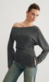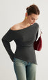 Asimetrik Yaka Yırtmaç Detaylı Büzgülü Bluz