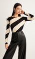 Asimetrik Çizgili Dar Kesim Triko Bluz