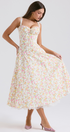 Fransız esintili bu yazlık elbise, nazik, romantik bir estetiği temsil eden narin bir çiçek baskısına sahiptir. Ayarlanabilir spagetti kayışları hoş bir uyum sağlarken, akıcı siluet doğal şeklinizi geliştirerek zahmetsizce zayıflama etkisi yaratır. Sıcak günler için mükemmel olan bu uzun elbise, her durum için stil ve konforu birleştiriyor.