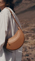 Yuvarlak şekli, köpük dolgusu ve el dikişi ile Avelin Omuz Çantası,eyer yapımının binicilik kodlarına bir göndermedir. Yarım ay tasarımı, karşıt eğrileri vurgular.