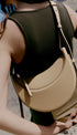Yuvarlak şekli, köpük dolgusu ve el dikişi ile Avelin Omuz Çantası,yarım ay tasarımı,zıt eğrileri öne çıkarır.
