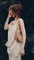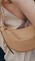 Yuvarlak şekli, köpük dolgusu ve el dikişi ile Avelin Omuz Çantası,yarım ay tasarımı,zıt eğrileri öne çıkarır.