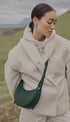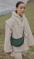 Yuvarlak şekli, köpük dolgusu ve el dikişi ile Avelin Omuz Çantası,yarım ay tasarımı,zıt eğrileri öne çıkarır.