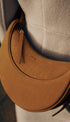 Yuvarlak şekli, köpük dolgusu ve el dikişi ile Avelin Omuz Çantası,yarım ay tasarımı,zıt eğrileri öne çıkarır.
