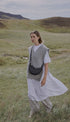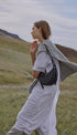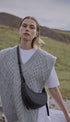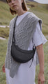 Yuvarlak şekli, köpük dolgusu ve el dikişi ile Avelin Omuz Çantası,eyer yapımının binicilik kodlarına gönderme yapar. Kanvas edisyonu, iki renk iplik kombinini ve deri süslemeleri barındıran benekli yünden kesilmiştir.