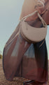 Yuvarlak şekli, köpük dolgusu ve el dikişi ile Avelin Omuz Çantası,yarım ay tasarımı,zıt eğrileri öne çıkarır.