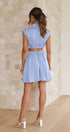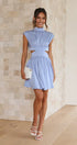 Bu şık mini elbise, şık, yüksek yakalı bir tasarıma ve kolsuz bir siluete sahiptir; sıcak havalarda yapılan geziler için mükemmeldir. Arkadaki elastik bel bandı rahat bir uyum sağlarken, göz alıcı bel kesim detayı modern bir dokunuş katıyor.