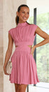 Bu şık mini elbise, sofistike, yüksek yakalı bir tasarıma ve kolsuz bir siluete sahiptir ve tarzınızı sergilemek için mükemmeldir. Arkadaki elastik bel bandı rahat bir uyum sağlarken, şık bel kesim detayı modern bir dokunuş katıyor.