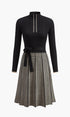 Kemerli Triko Kazak Ekose Etek Elbise