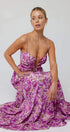 - Tasarım: Sırtı Açık, Ayarlanabilir Kesik Yaka, Çiçek Baskılı, Katlı Maksi Etek