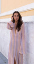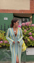 Boho tarzı tığ işi örgü elbiselerimiz ile keyifli bir tatil havasına kaçışın. Butiğimizdeki bu tatil amaçlı maksi elbise, tığ işi örgü üzerine renkli dikey dalgalı çizgilerle büyüleyici tavus kuşu benzeri bir etki sergiliyor. Yarı şeffaf kumaş, havadar ve kaygısız bir his sunar; güneşlenmek veya plaj esintisinin tadını çıkarmak için idealdir. Göz alıcı dekolteli, geniş uzun kollu ve uzun elbise kesimli bu kıyafet, tatillerin kaygısız özünü özetliyor, kadınlara zahmetsizce şık ve neşeli bir kombin sunarak sizi şık bir kaçamağın katıksız keyfine kapılmaya davet ediyor.