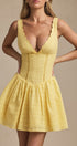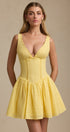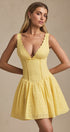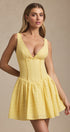Mira Fiyonklu Brode A Kesim Mini Elbise – Pastel Sarı
