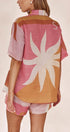 Parlak Güneş Bol Baskılı Tatil Gömlek Şort Takım