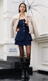 Düğme Detaylı Yırtmaçlı Denim Straplez Üst