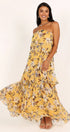 Calista Yeşil Bloom Straplez Katlı Uzun Elbise
