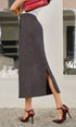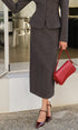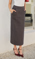 Şevron Desenli Yırtmaçlı Cepli Etek