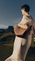 Bu dalgalı, katlı ve kıvrımlı tasarıma sahip heykelsi kompakt tote çanta iki şekilde kullanılabilir. Sepet tarzı, kenarları açık ve askıları dışarıda, ya da çiçek şeklinde kapalı çanta olarak, kenarları içe katlanmış ve askıları içte çaprazlanmış olarak.