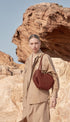 Bu dalgalı, katlı ve kıvrımlı tasarımlı kompakt tote çanta iki şekilde kullanılabilir. Sepet tarzında, yanları açık ve askıları dışarıda, veya çiçek şeklinde kapalı çanta olarak, yanları içe kıvrılmış ve askıları içeride çaprazlanmış şekilde.