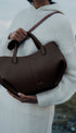 Bu dalgalı, kıvrımlı ve eğimli tasarıma sahip heykelsi kompakt tote çanta, iki şekilde kullanılabilir. Sepet tarzı, kenarları açık ve askıları dışarıda, veya çiçek gibi kapalı çanta olarak, kenarları içe kıvrılmış ve askıları içten çapraz.