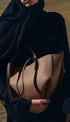 Bu dalgalı, katlı ve kıvrımlı tasarıma sahip heykelsi kompakt tote çanta iki şekilde kullanılabilir. Sepet tarzı, kenarları açık ve askıları dışarıda, veya çiçek gibi kapalı çanta olarak, kenarları içe kıvrılmış ve askıları içte çaprazlanmış şekilde.