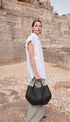 Bu, dalgalı, katlanmış ve kıvrımlı tasarıma sahip Cereline tote çantası iki şekilde kullanılabilir. Sepet tarzı, yanları açık ve askıları dışarıda, ya da çiçek şeklinde kapalı çanta olarak, yanları içe kıvrılmış ve askıları içte çaprazlanmış şekilde.