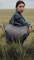 Bu dalgalı, katlı ve kıvrımlı tasarıma sahip heykelsi tote çanta, iki şekilde kullanılabilir. Sepet tarzında, yanları açık ve askıları dışarıda, veya bir çiçek gibi kapalı çanta olarak, yanları içe kıvrılmış ve askıları içte çaprazlanmış şekilde.
