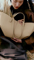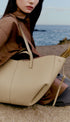 Bu dalgalı, katlı ve kıvrımlı tasarıma sahip heykelsi tote çanta iki şekilde kullanılabilir. Sepet tarzı, yanları açık ve askıları dışarıda, ya da çiçek gibi kapalı çanta olarak, yanları içe kıvrılmış ve askıları içten çaprazlanmış şekilde.