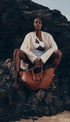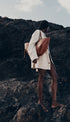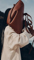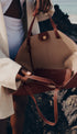Bu dalgalı, katlı ve kıvrımlı tasarıma sahip heykelsi tote çanta iki şekilde kullanılabilir. Sepet tarzı, yanları açık ve askıları dışarıda, ya da yanları içe katlanmış ve askıları içte çaprazlanmış çiçek benzeri kapalı çanta olarak.