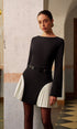 Renk Bloklu Yan Pile Detaylı Kemerli Kısa Elbise