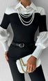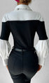 Renk Bloklu İnce Yaka Üst