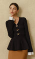 Kontrast Manşetli Fırfır Detaylı Triko Üst