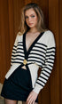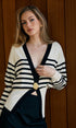 Zıt Renk Çizgili Metal Düğmeli Hırka