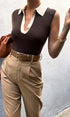Kontrast Trim Yaka V Yaka Örme Kazak Yelek