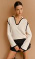 Kontrast Biyeli Kesik Detaylı Yaka Triko