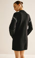 Kontrast Kesim Kazak Kısa Elbise