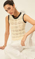 Tığ İşi Kontrast Süslemeli Kazak Yelek