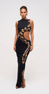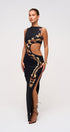 Özgün yılan deseni, keskin detayları ve feminen kalıbıyla bu elbise, davetlerde tüm gözleri üzerinize çeker.