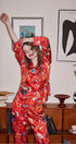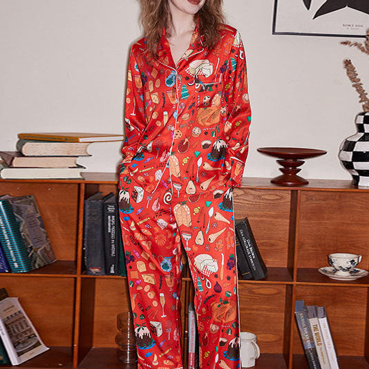 Bu turuncu tatlı desenli pijama takımı, hafif kumaşı rahat kesimle birleştirerek hem konfor hem de stil sunar. Düğmeli, uzun kollu üst kısmı ve uyumlu pantolonuyla, rahat ilkbahar ve sonbahar dinlenmeleri için mükemmeldir.