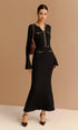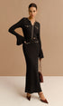 Zarif Kontrast Biyeli Fırfırlı Dar Elbise (Kemersiz)